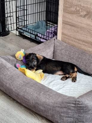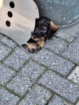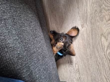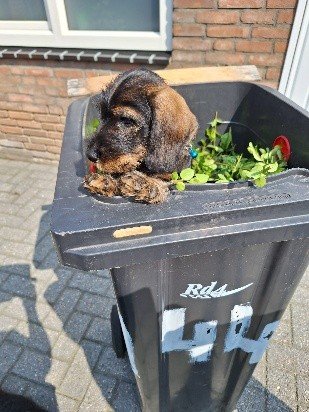 Wat was dat spannend die laatste dag bij mijn zusjes. Mijn nieuwe baasjes zijn me komen ophalen en we gaan ik weet nog niet waarheen, maar het is lang rijden. Het was een fijne tijd samen met mama en mijn zusjes maar ik trek nu de wijde wereld in. Heb eerst ons vervoermiddel geïnspecteerd voordat we aan de reis konden beginnen. Ben heerlijk in slaap gevallen en heb eigenlijk niet veel meegekregen van de rit. Toen we stopten was ik in het verre Landgraaf in Limburg. Ik als belangrijk hondje behoor door de voordeur binnen te komen maar het werd de achter deur of te wel de poort. Hier werd ik opgewacht door een soort genoot met de naam Mr. Jingles die ook daar vandaan komt waar ik ben geboren. We hebben aan elkaar gesnuffeld en elkaar verder niet echt met rust gelaten. Ik wilde hem leren kennen maar Mr. Jingles wilde dit nog niet en liep weg. Ik ben hem achterna gegaan en heb ondertussen al van die leuke speeltjes gevonden die ik heb uitgeprobeerd. Mr. Jingles liet dit gewoon gebeuren en keek toe. Heb eenmaal binnen ook mijn eigen Bench gezien en geïnspecteerd, maar die andere Bench van Mr. Jingles vond ik toch ook wel heel interessant. Deze werd echter beschermd dus ben ik in mijn Bench gaan kijken. Deze heeft schuifdeurtjes die dicht worden gemaakt maar ook weer open. Dicht vind ik echt niet leuk en dat heb ik de eerste nachten ook duidelijk laten horen, maar het heeft niet echt geholpen om deze in de nacht geopend te krijgen. Nou Mr. Jingles was niet echt blij met mij die eerste nachten en is van liever leed in de gang op de deurmat gaan slapen. Nu na te zijn gewend vind ik mijn Bench wel fijn om in te slapen. Overdag is veel te beleven en te ontdekken, zoals buiten mijn behoefte doen en dan wat lekkers krijgen, maar binnen lukt mij dat ook nog weleens, maar vreemd als ik later nog eens ga kijken is het weg en heb hiervoor geen lekkertje gekregen. Heb ook al door waar ik moet zijn als ik iets doe wat eigenlijk volgens mijn baasjes niet mag. Onder de bank gaan liggen, daar zien ze me niet en krijgen ze me ook maar moeilijk te pakken. Helpen met de heg te knippen en op te ruimen vind ik ook heel leuk zoals jullie op een foto zullen zien. Heb al de nodige mensen leren kennen, wil ook gaan wandelen maar vind de riem niet fijn en dat laat ik weten ook, ga gewoon liggen of erin bijten. Dit gaat goed komen zeggen mijn baasjes. Oh ja weten jullie wat heel fijn is, verstoppertje spelen als ik iets gedaan heb wat volgens mijn baasjes niet zo fijn is, knuffelen en dat lekkere eten, zoals s ’morgens dat vlees en later op de dag de brokjes. Maar ergens ken ik die van, volgens mij heb ik dat al eens eerder gehad.
