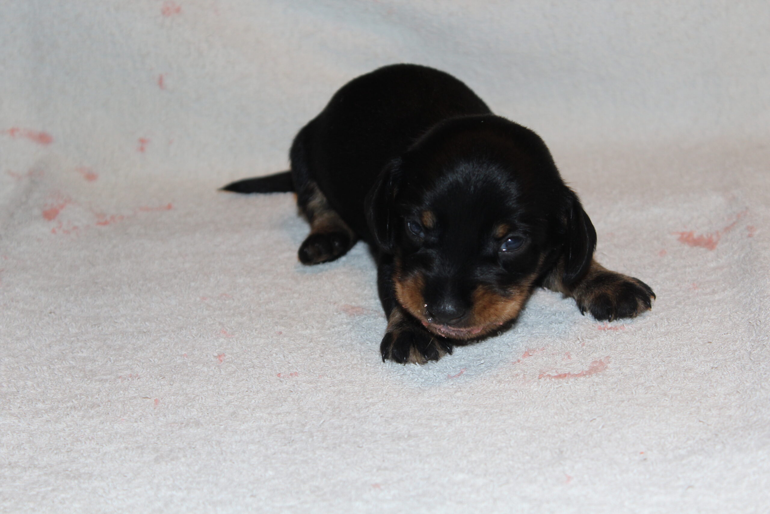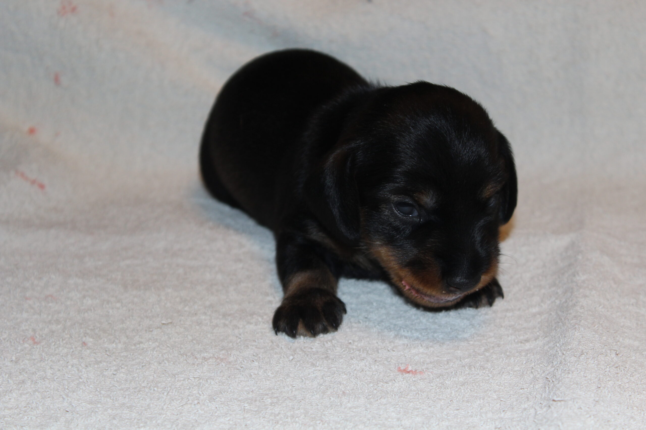 Deze week zijn de oogjes open gegaan en de oortjes volgen wat later. Wij zien dan ook hoe de kleintjes langzamerhand de werpkist willen gaan ontdekken. Niet lang daarna beginnen ze voorzichtig met de eerste stapjes. Een heel verschil met de weekjes daarvoor. Het worden al echte minihondjes.