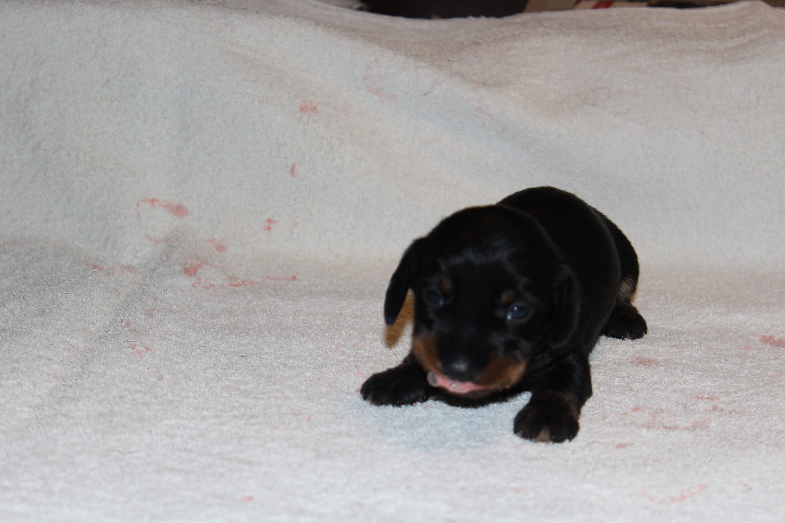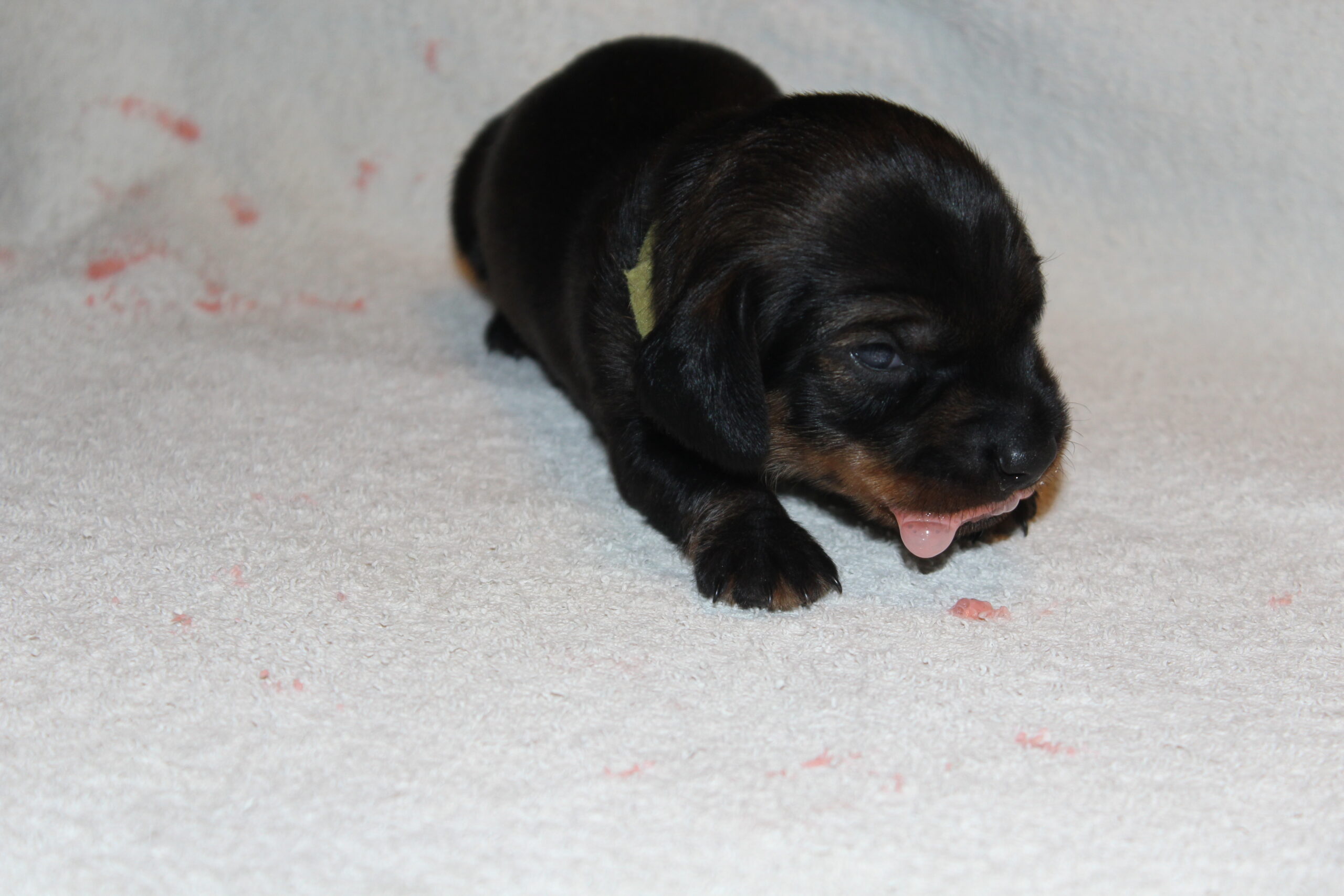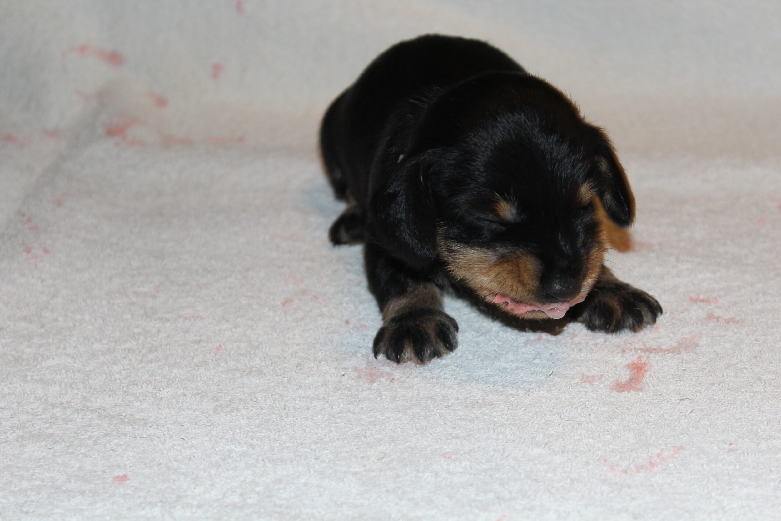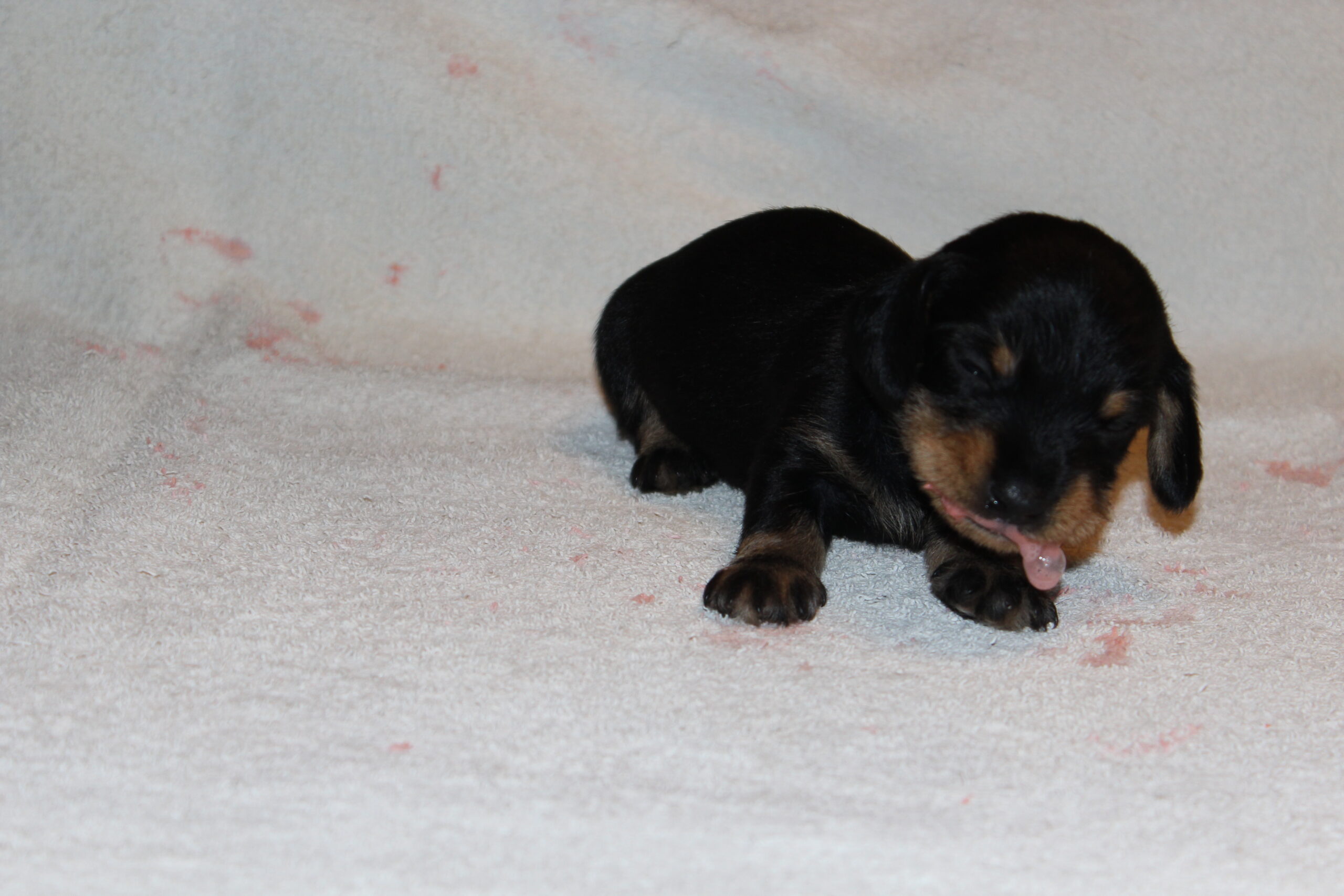 Wat onlosmakelijk verbonden blijft met de tweede week is de onvermijdelijke wormenkuur. Het tweewekelijks ritueel, waaraan geen enkele pup kan ontsnappen. De meeste pups vinden de smaak echt smerig, hetgeen dan ook goed op meerdere foto’s van Bert te zien is.