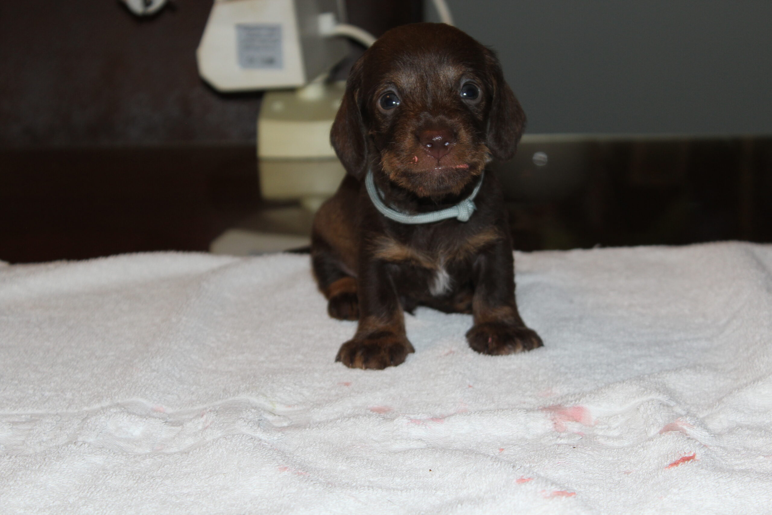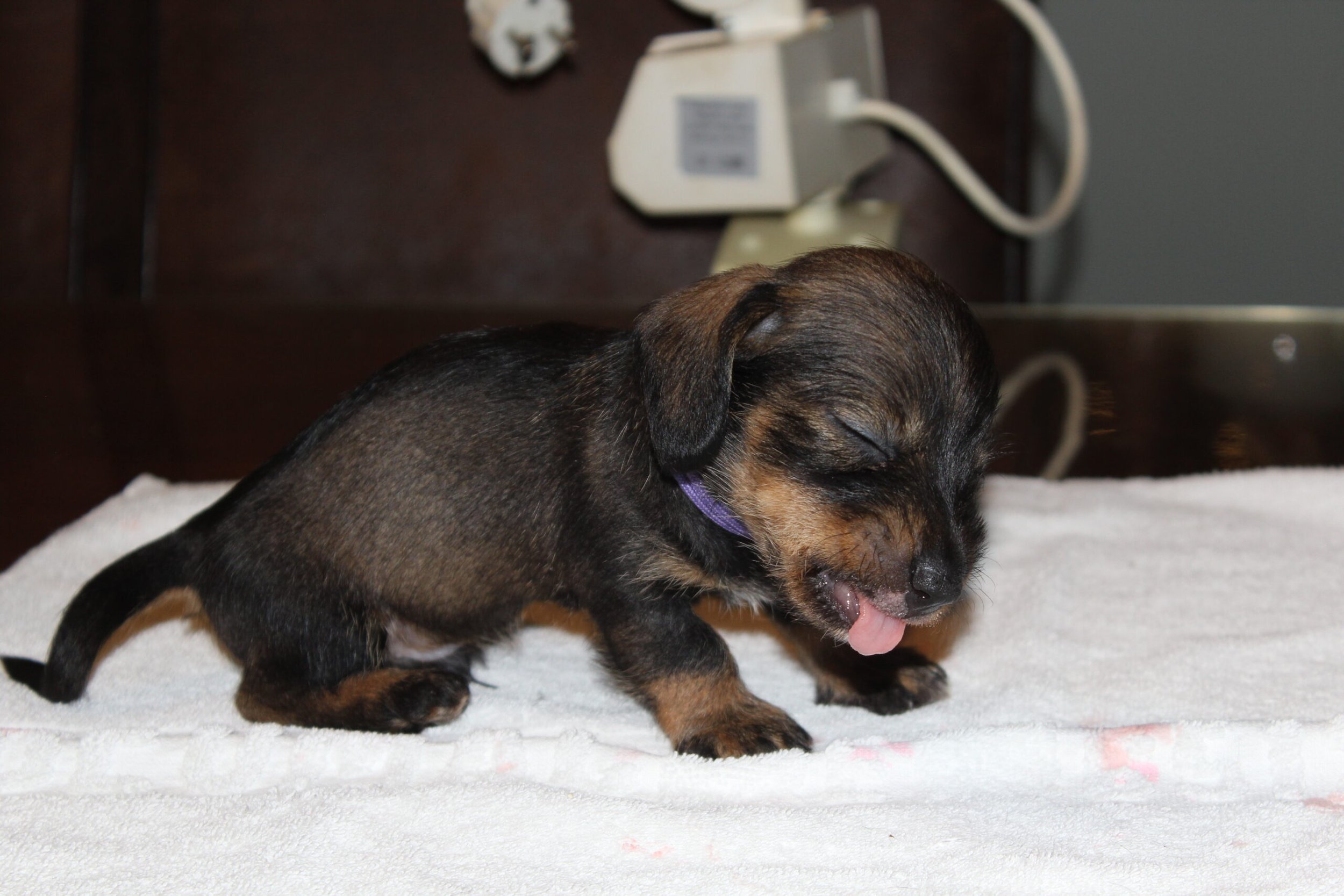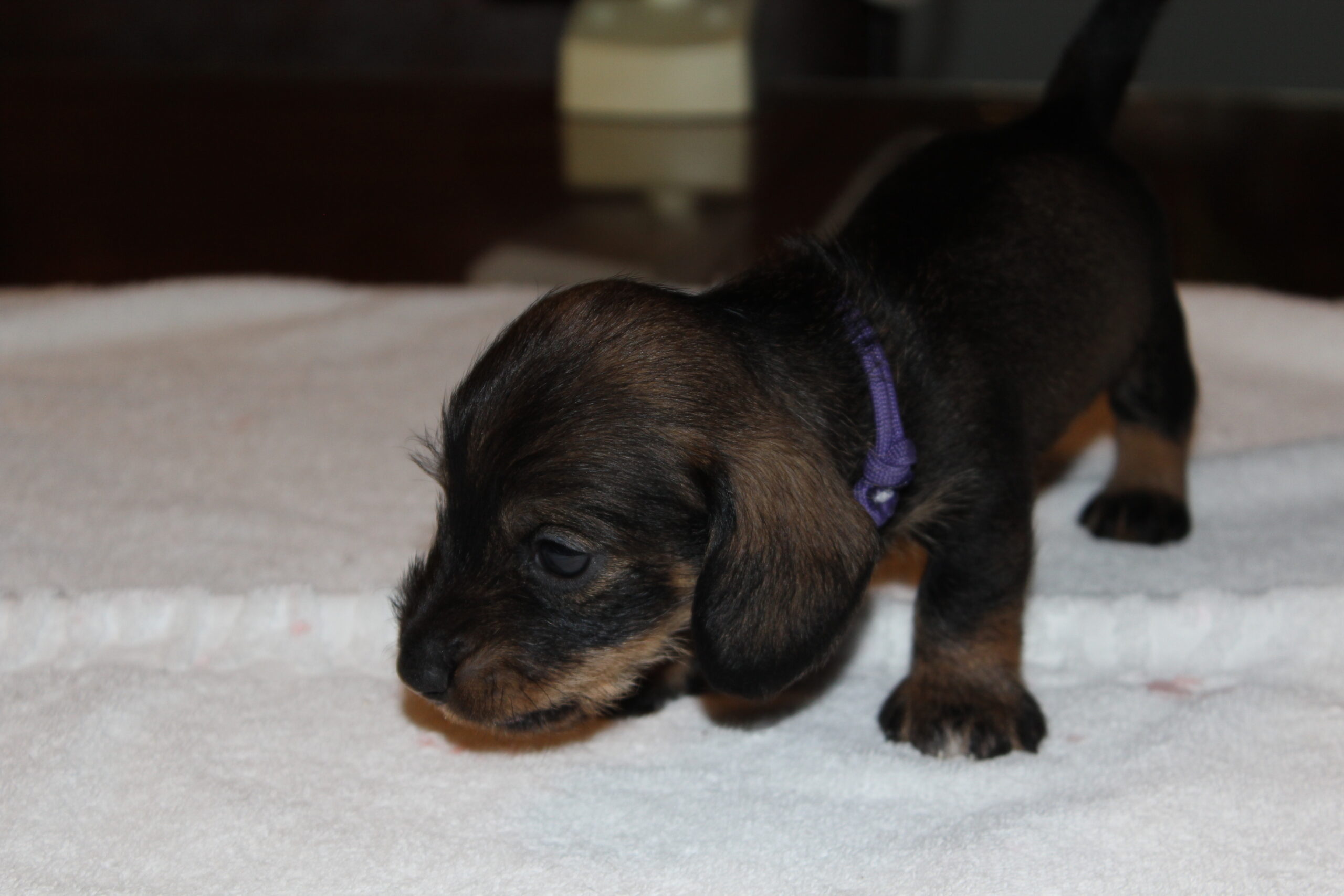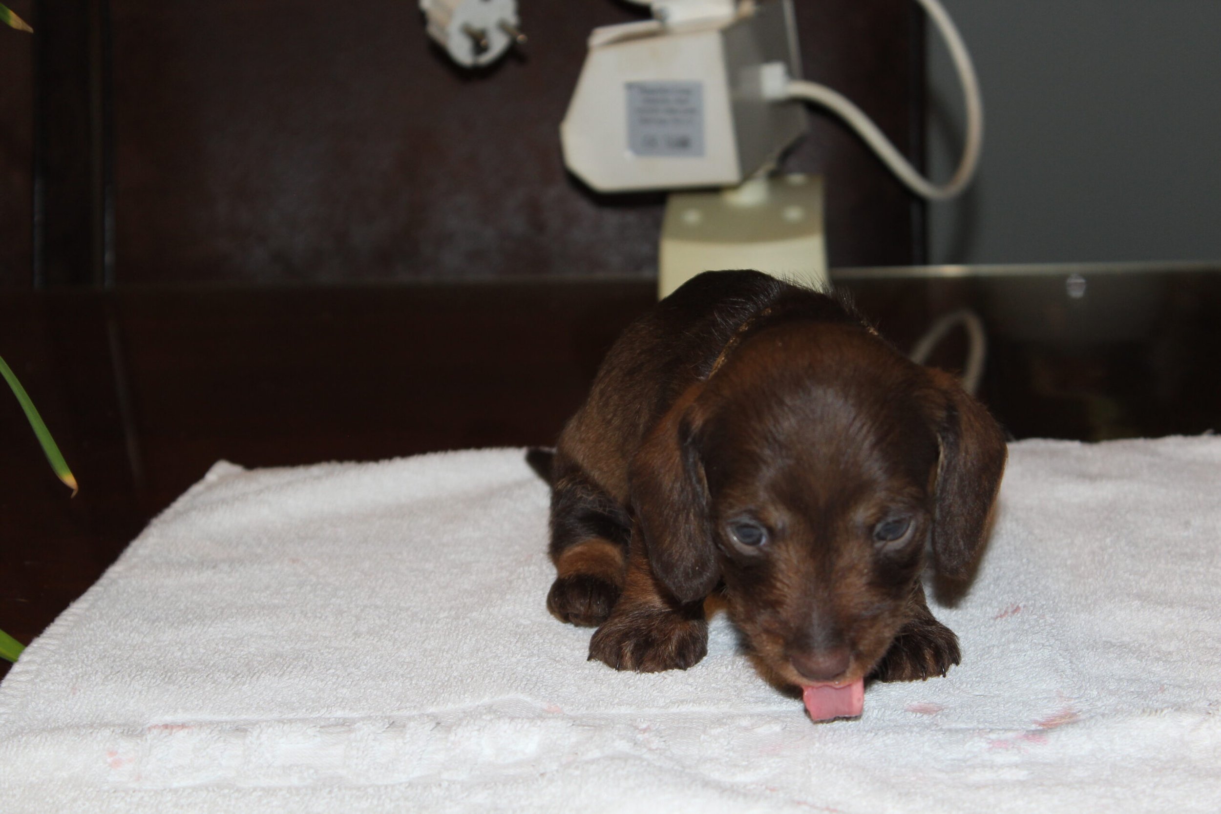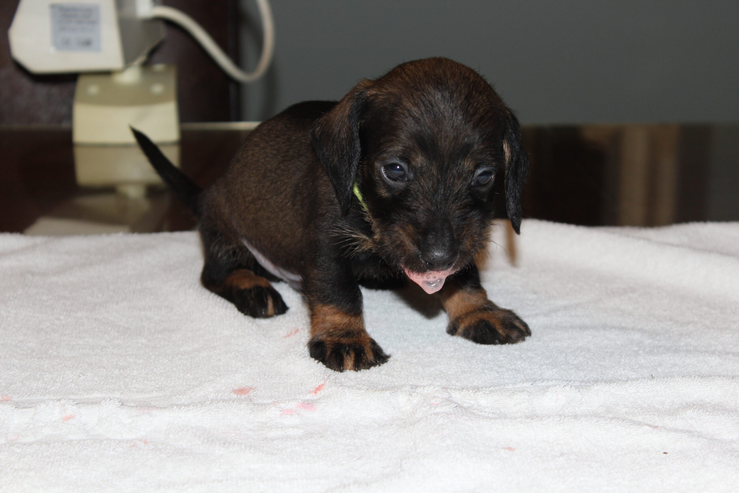 Wat groeien ze toch hard. Van kleine ‘molletjes’ naar mini-teckels. Inmiddels oefenen onze pupsels tussen het slapen en het eten door het lopen en dat gaat natuurlijk met vallen en opstaan. We zien de vooruitgang. Ook spelen ze graag met de oortjes van elkaar. Hier en daar is al een hoektandje doorgekomen en die moet je dan ook even testen. Het liefst op een broertje of zusje. Mama Fleur vindt het nogal heftig zo’n scherp tandje in haar tepels, maar doorstaat het moedig. Onvermoeibaar blijf ze haar kindjes voeden en liefdevol verzorgen en dat zien we terug bij de dagelijkse weegbeurt. Inmiddels zijn ook de eerste puppy -bezoekjes geweest. Zo gezellig altijd en wat is het fijn voor ons te zien hoe blij de nieuwe baasjes zijn met hun pup. Zo vloeit er soms ook een traantje, zowel bij het nieuwe baasje als wel bij mij (Herma). Hoe vaak zeggen we niet dat we daarom zijn gaan fokken. Mensen blij mogen maken met een gezonde en ook nog prachtige hond. We zijn bevoorrechte fokkers, die hopen dit nog een geruim aantal jaren te mogen doen. Intussen wachten nog meer nieuwe baasjes op hun pup, maar dat duurt dan nog even. Heb nog even geduld. Jullie pup zal ook komen. We begrijpen dat wachten soms lang duurt, maar jullie geduld wordt zeker beloond. Moeder Natuur kunnen we niet dwingen en we respecteren dat natuurlijk ook. Iemand is altijd welkom voor een bezoekje aan ons en de roedel. Dat kan het wachten wat verzachten, maar misschien ook wel bemoeilijken. Voor de echt ongeduldige geïnteresseerden hebben wij als alternatief een bevriende fokker van ons, die wellicht iets eerder een pup heeft. De keuze is aan u.