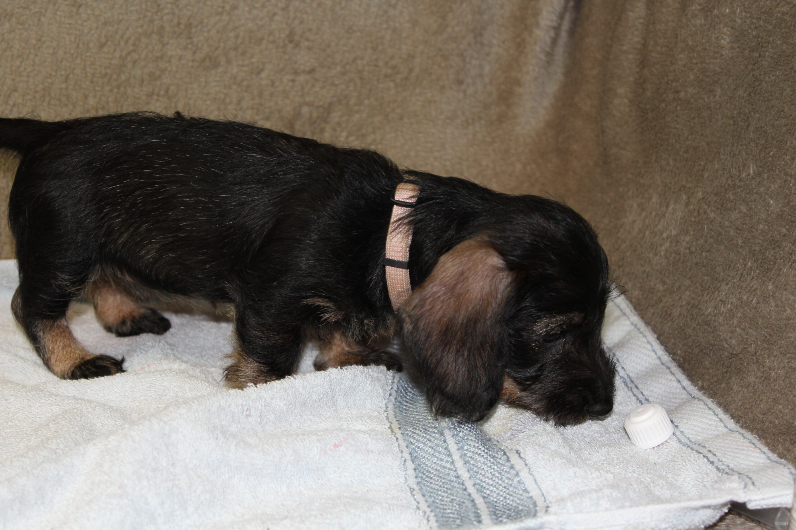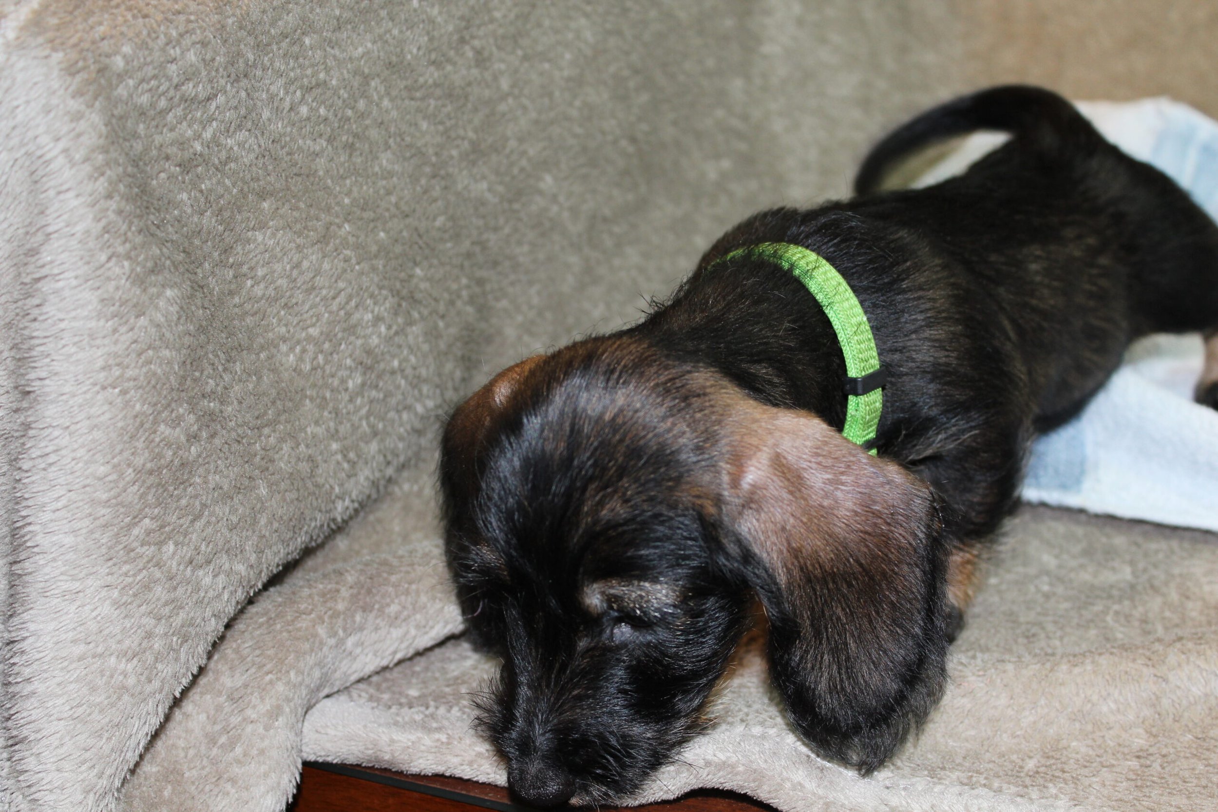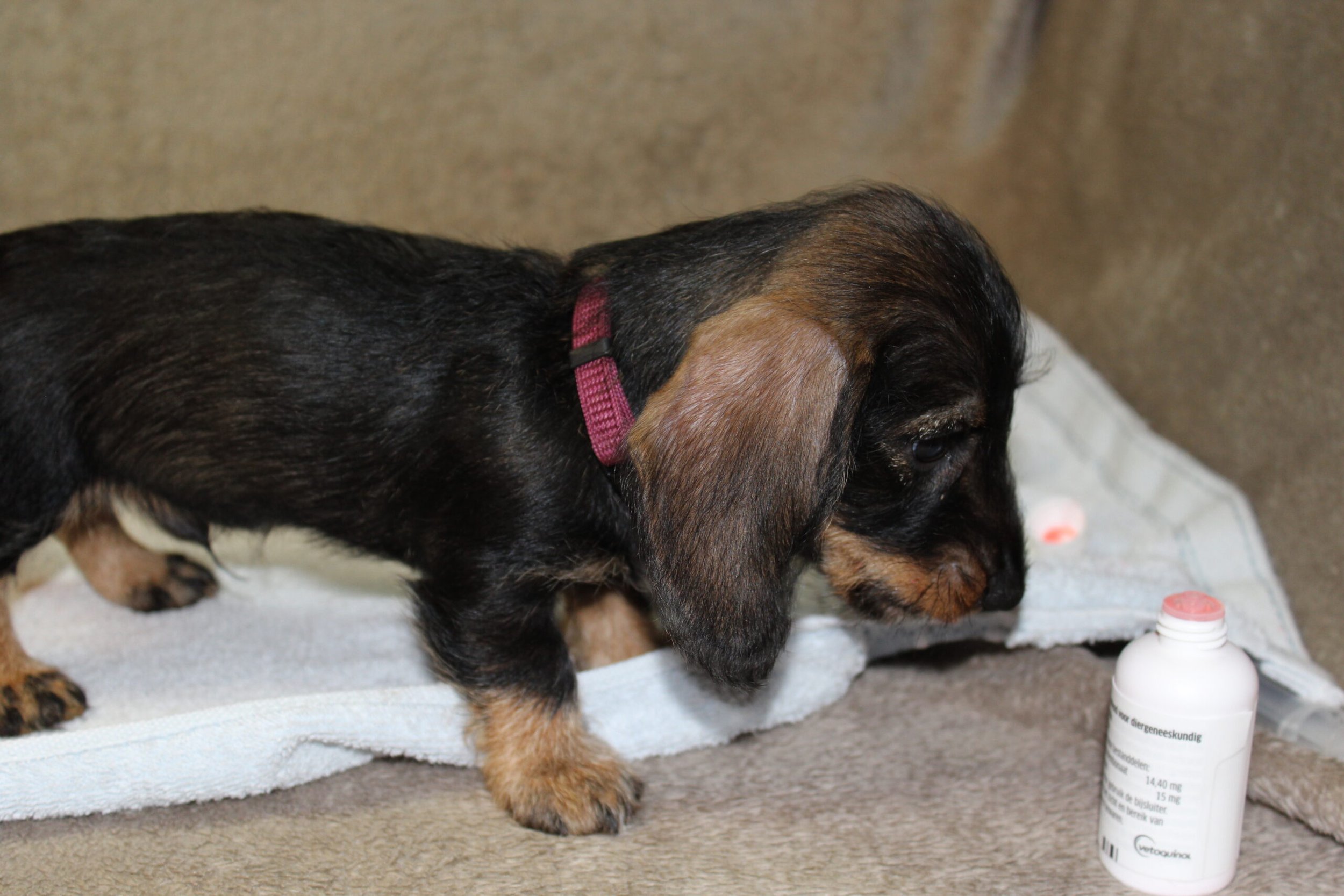 Het was ook weer tijd voor de laatste ontwormingskuur. Die hebben we allemaal weer overleeft. Daarnaast hebben we vandaag ook voor het eerst met alle andere teckels gespeeld. M.n. Angel en Jacha wilden ons nader leren kennen. WE hebben vreselijke lol gehad en waren na een poosje ook best moe. Bert heeft ons weer in onze kamerkennel gestopt en daar zijn we in een diepe slaap gevallen. Nog even enkele 'actie foto's.