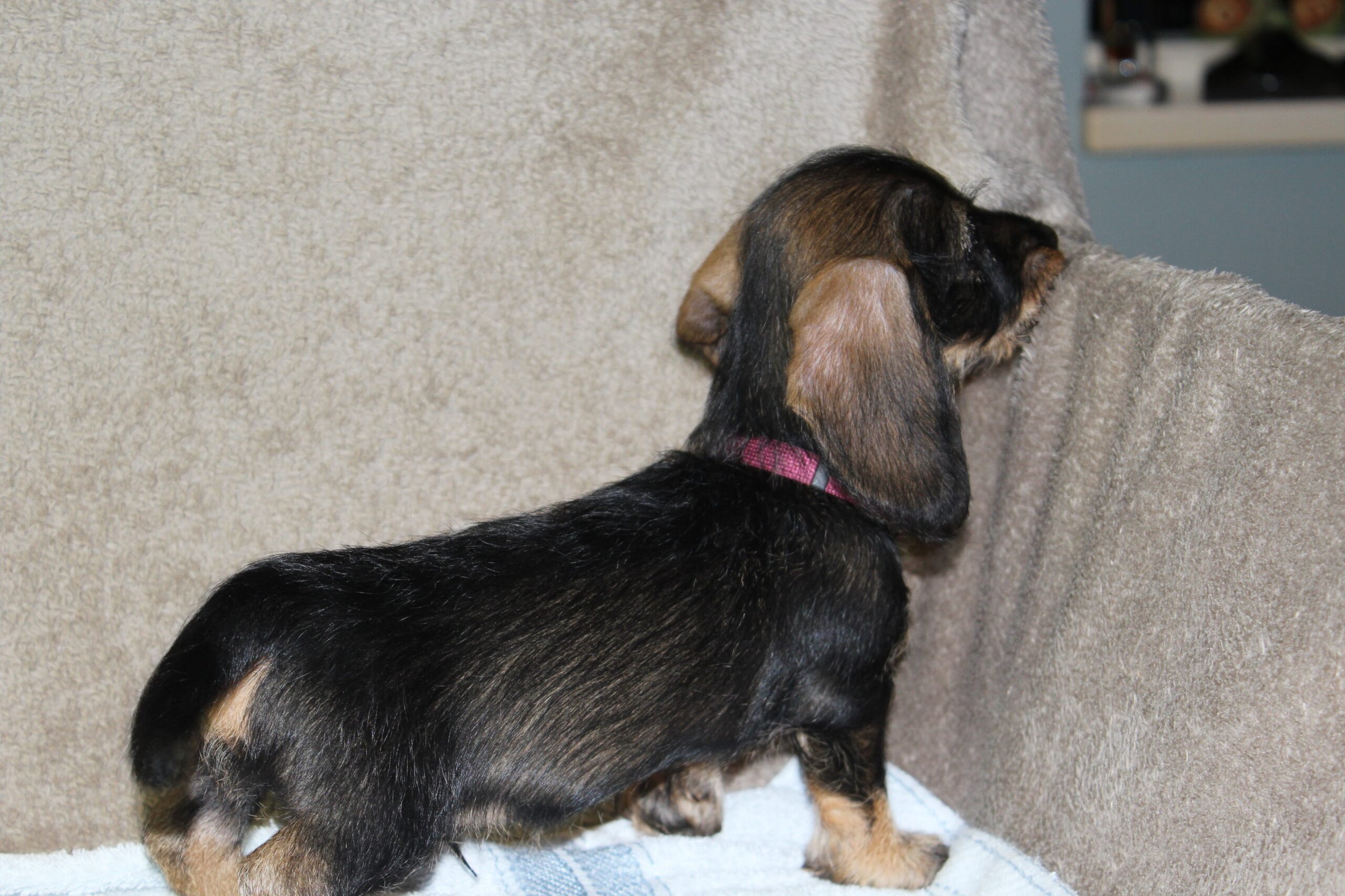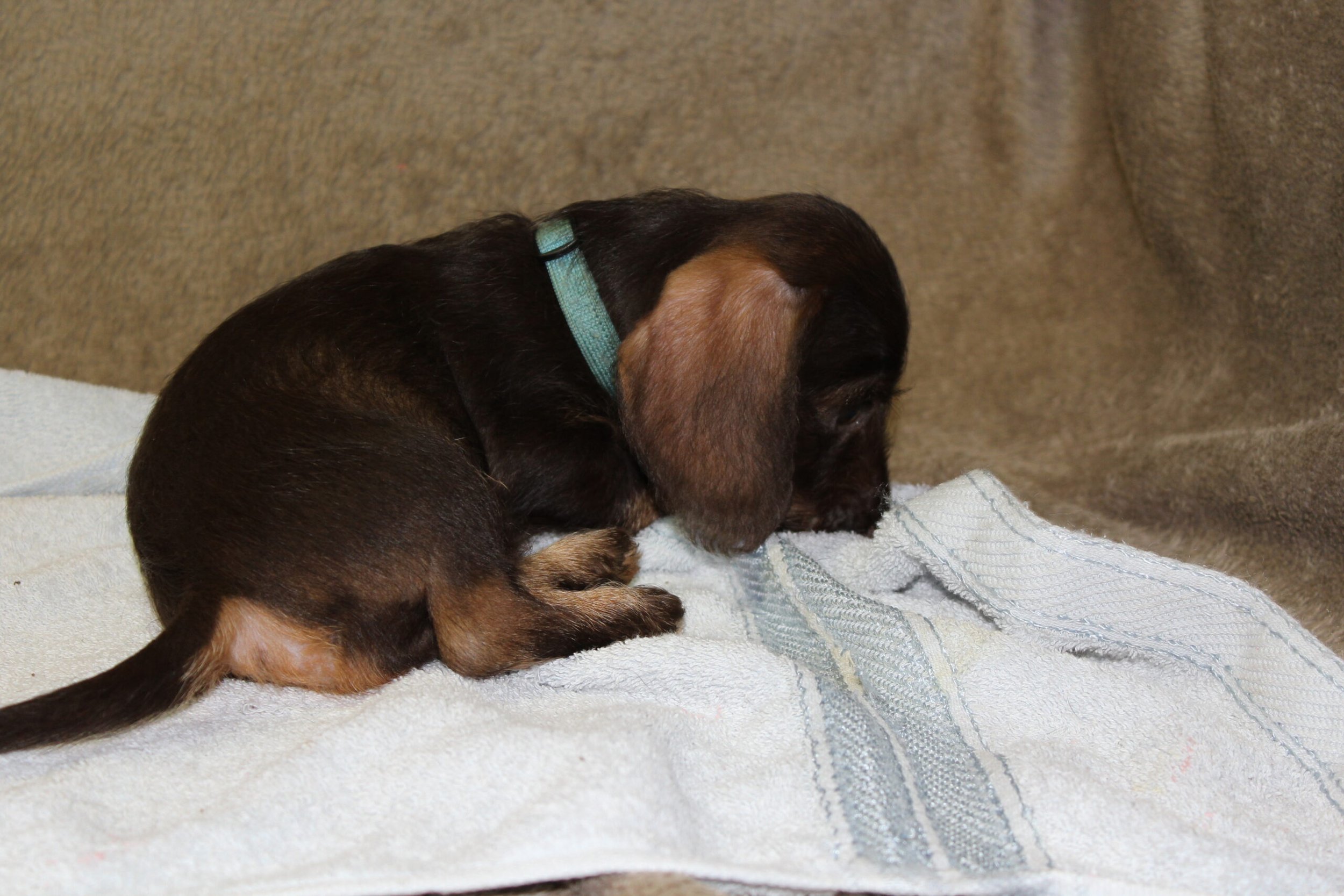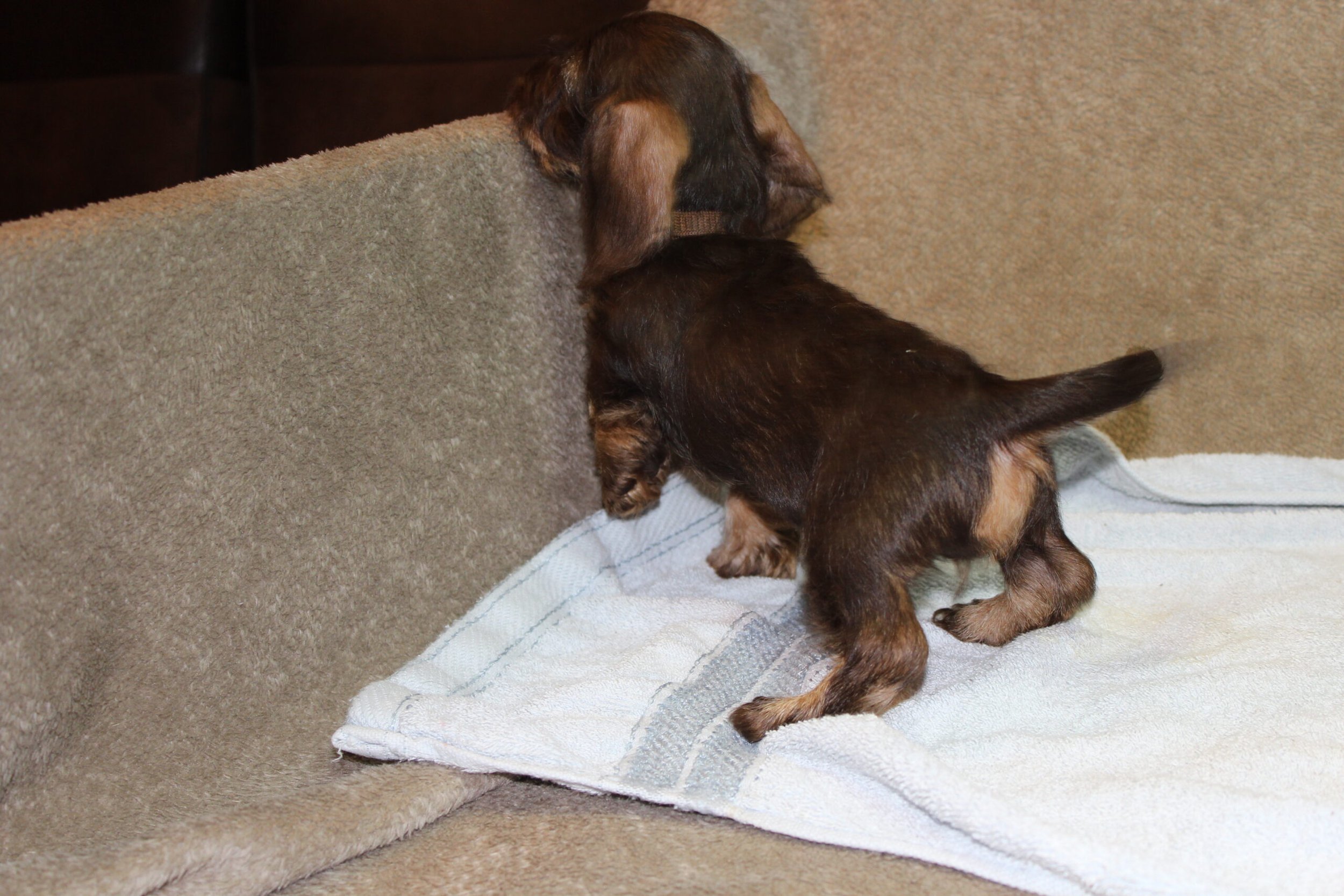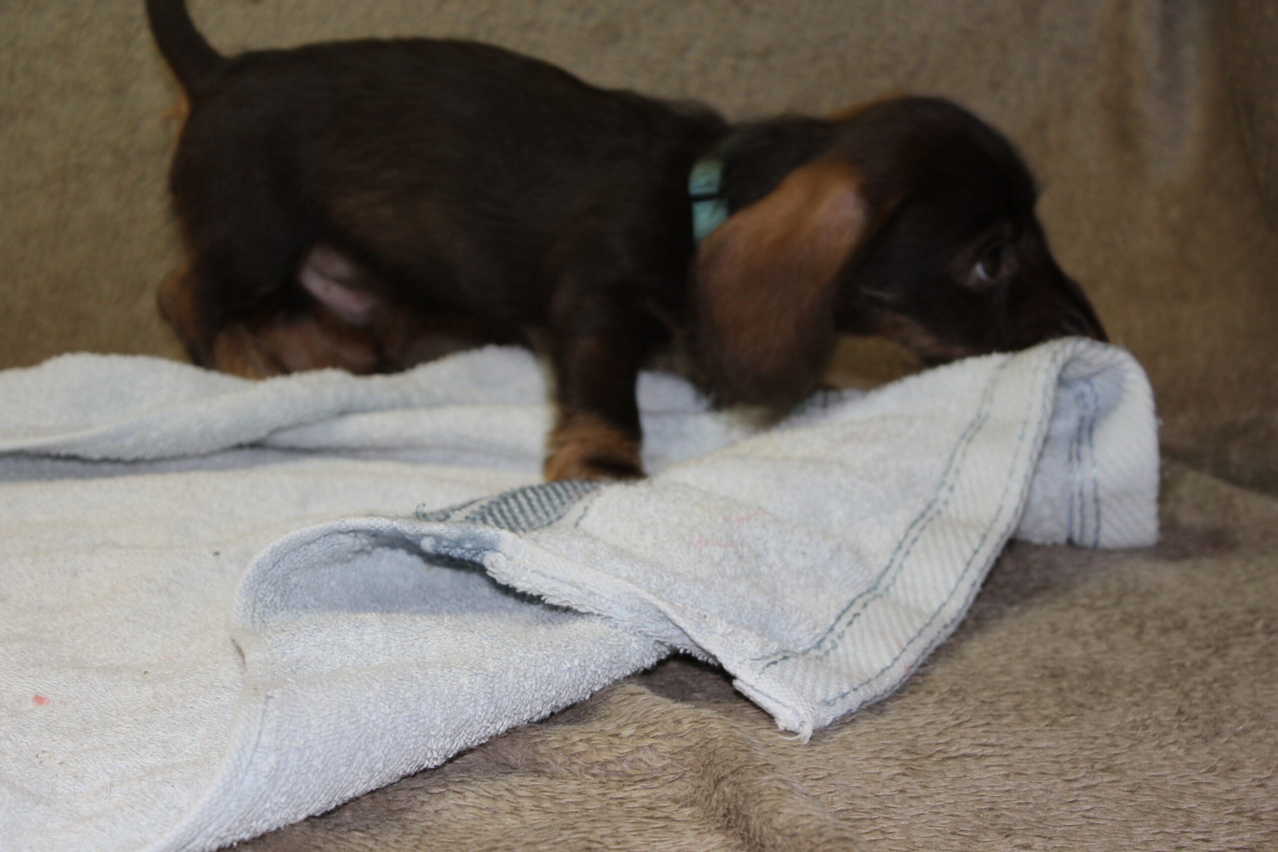 Het was ook weer tijd voor de laatste ontwormingskuur. Die hebben we allemaal weer overleeft. Daarnaast hebben we vandaag ook voor het eerst met alle andere teckels gespeeld. M.n. Angel en Jacha wilden ons nader leren kennen. WE hebben vreselijke lol gehad en waren na een poosje ook best moe. Bert heeft ons weer in onze kamerkennel gestopt en daar zijn we in een diepe slaap gevallen. Nog even enkele 'actie foto's.