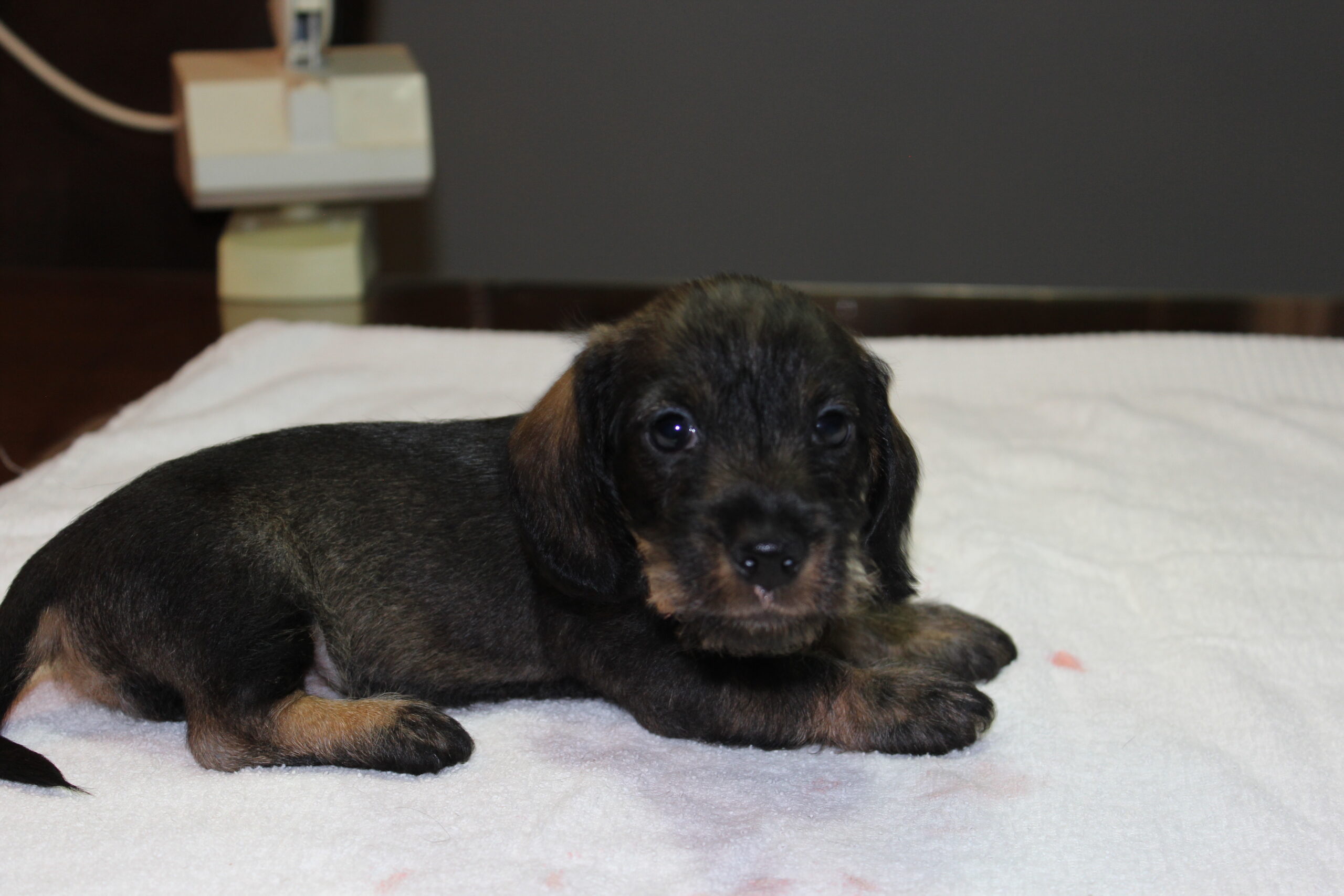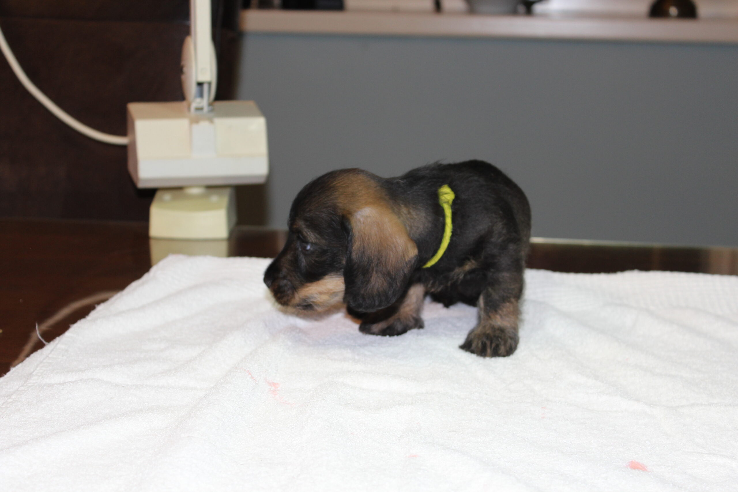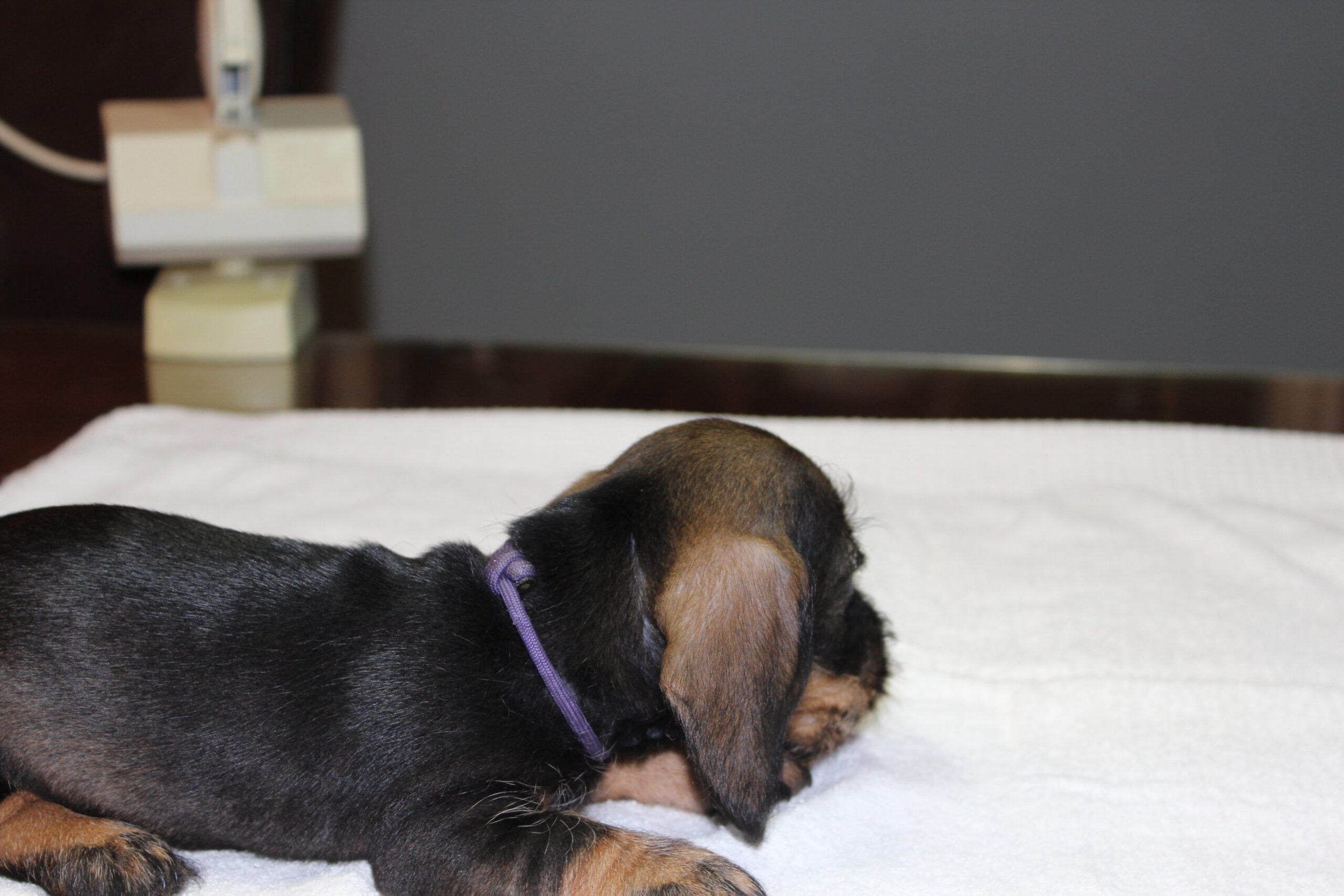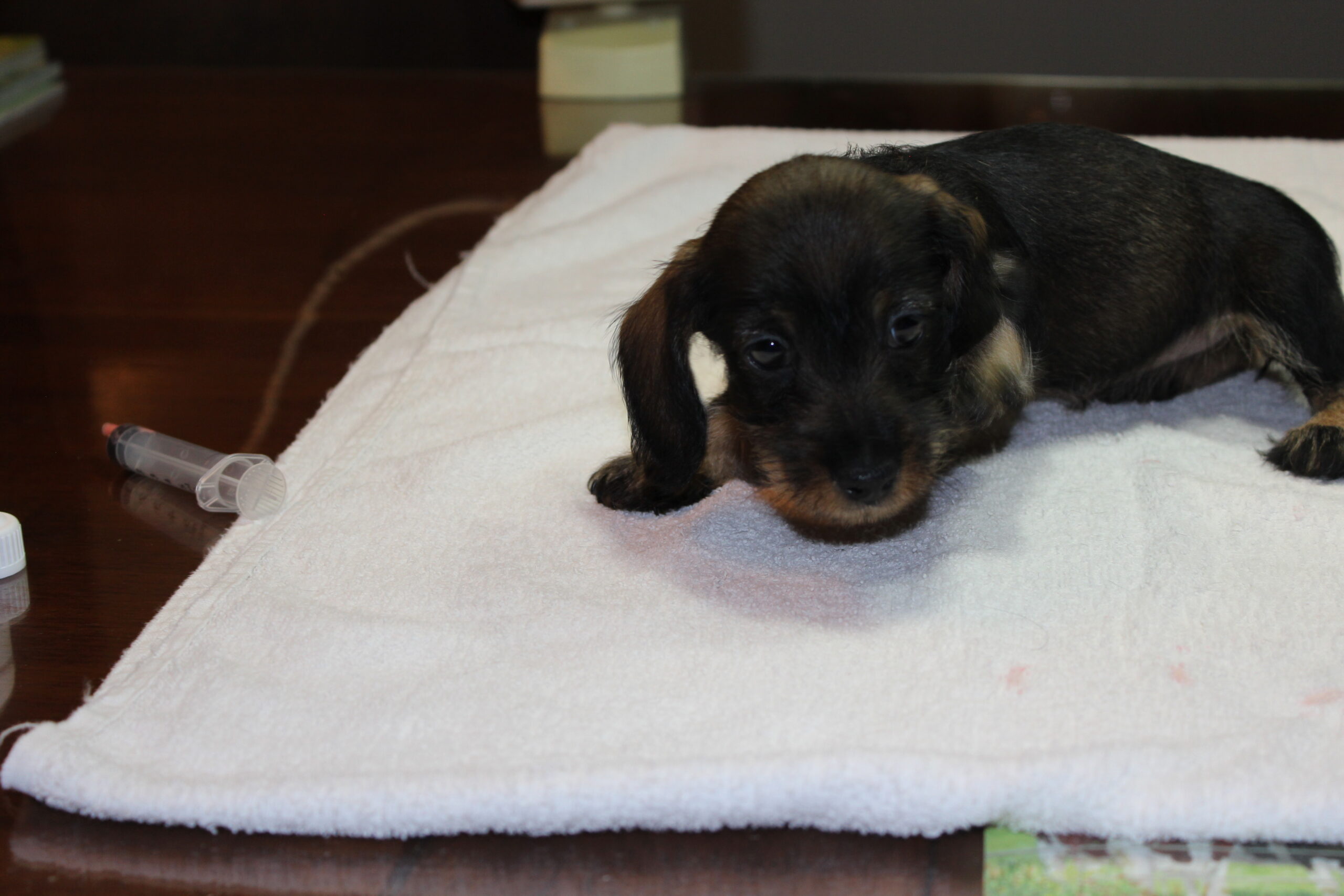Daarop brak de tweede week aan; week 6. Dat betekent de eerste inenting en de eerste lichamelijke controle. Dinsdag was Julia met haar kroost aan de beurt. Alles gereed gemaakt, pups in de reisbench en mama Julia aan de riem en samen naar de dierenarts. Nadat alle dierenpaspoorten gereed waren gemaakt, ging het naar de spreekkamer waar de eerste pup tevoorschijn werd gehaald. Eerst even wegen en aansluitend een algehele lichamelijke controle; oogjes, oren, gebit. De buikjes worden aan een onderzoek blootgesteld of er mogelijk een navelbreukje aanwezig is – komt nog wel eens voor – of dat het buikje niet soepel aanvoelt. Daarna wordt er bij de reutjes gecontroleerd of de balletjes goed zijn ingedaald en daarna wordt er een algeheel oordeel over de pup gegeven. Dit alles wordt door de assistent in het dierenpaspoort genoteerd. Daarna wordt de chip nog even gecontroleerd en als alles oké bevonden is, volgt de eerste vaccinatie. Hierna gaat de pup weer terug in de reisbench en is de volgende pup aan de beurt. Zo volgt voor iedere pup hetzelfde ritueel. Als laatste is mama Julia aan de beurt. Ook zij wordt nog even goed gecontroleerd en ook bij haar zijn er geen ‘rare’ dingen gevonden. Even de kas van de dierenarts aanvullen en dan weer snel naar huis waar ik ongeduldig zit te wachten om de uitslag van Bert te vernemen: alles oké!